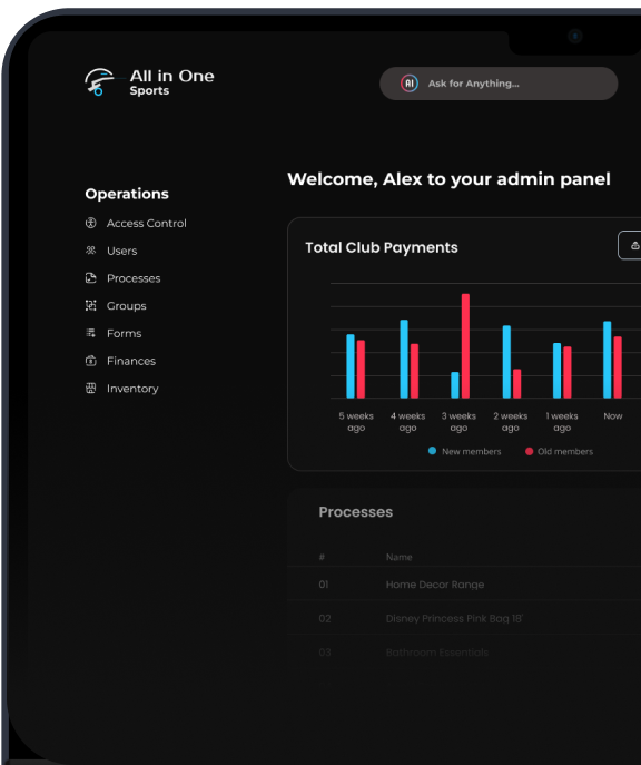 Our application delivers a suite of interconnected services and features, designed to maximize user engagement and improve club management. The dynamic matrix of services, seamlessly integrated with the core features on the left, empowers users with an intuitive and efficient experience